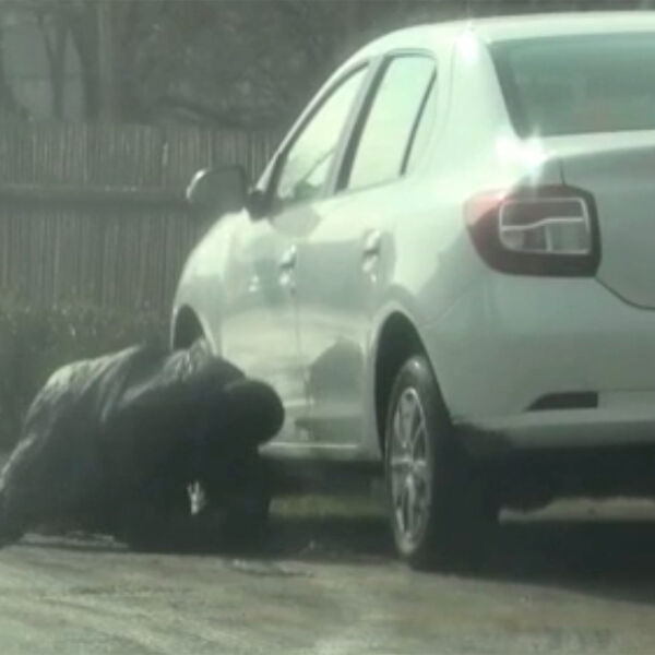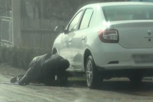 На кадрах, опубликованных ФСБ РФ, можно увидеть, что агент СБУ спотыкается, падает перед автомобилем, затем закладывает под машину предмет, после этого он встает, отряхивает колени, подбирает трость и уходит.