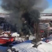 Инцидент произошел на Шоссейной улице поселка Бугры. В здании обрушилась крыша, огонь перекинулся на другие объекты на территории.