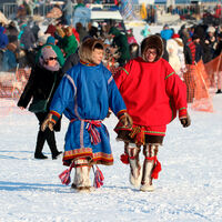 Участники фестиваля приняли участие в соревнованиях по метанию тынзяна на хорей (аркана на шест для погонки оленей), набрасыванию колец на рога оленя, перетягиванию палки, стрельбе из лука и прыжках через нарты.
