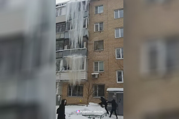 Жительница подмосковного города Пушкино сняла на видео гигантскую сосульку на одной из пятиэтажек. Ролик опубликовал Telegram-канал «Pushkino_official | НОВОСТИ».