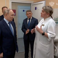 По ту сторону экрана была участковый врач-терапевт, которая работает в центральной районной больнице в 2 км от ФАП. Пройдя процедуру и пообщавшись с врачом, Путин поинтересовался у доктора рядом с ним, много ли таких консультаций приходится выполнять. Терапевт ответила, что только с этим ФАП она связывается пять-шесть раз в день.
