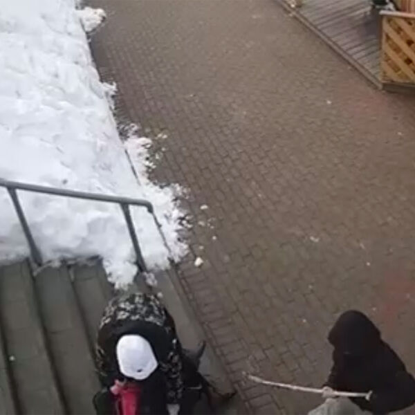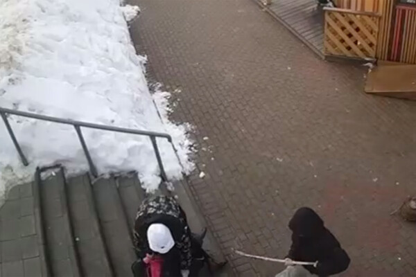На кадрах мужчина в белом капюшоне и черной куртке набрасывается на женщину с ножом и несколько раз ударяет ее в голову и туловище. По данным канала, поводом для конфликта стали оскорбления, которые пострадавшая якобы сказала в адрес жены агрессора.
