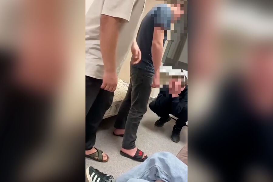 По информации Telegram-канала, студенты заставили юношу встать на колени, унизили его и избили, снимая это на видео. На кадрах видно, как молодые люди дают ему пощечины, дергают за кофту и пинают. При этом один из агрессоров угрожает «вырубить» юношу. Причина конфликта не уточняется.