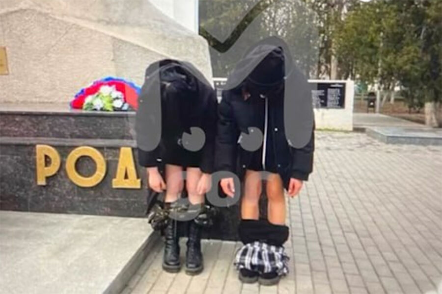 В Кабардино-Балкарии две школьницы сняли штаны у монумента защитникам Родины. Об этом сообщает Telegram-канал Mash Gor.