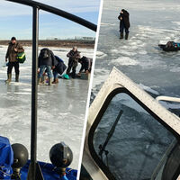 Спасатели на катере на воздушной подушке добрались до терпящих бедствие любителей подледного лова и доставили людей на берег. Медицинская помощь рыбакам не потребовалась.