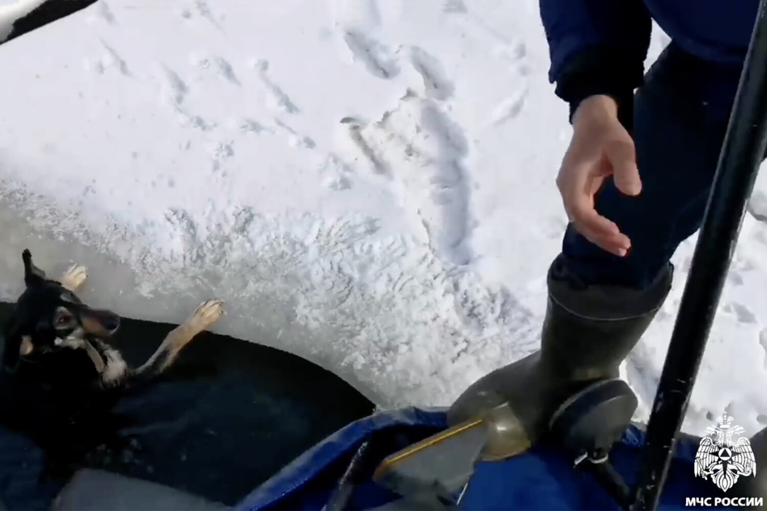 Бродячую собаку обнаружил в реке местный житель во время прогулки, мужчина понял, что не сможет сам вызволить пса, и вызвал спасателей. Сотрудники МЧС на катере подплыли к животному и, схватив за ошейник цеплявшегося за кромку льда пса, сумели вытащить его на берег.