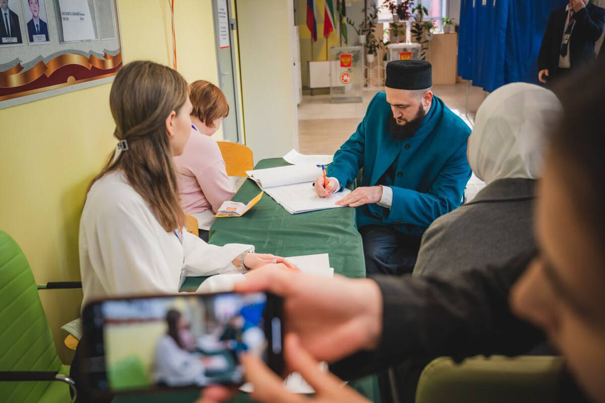 Так, ТГ-канал посольства Духовного управления мусульман Татарстана опубликовал пост, свидетельствующий о том, что муфтий Татарстана Камиль хазрат Самигуллин вместе со своей супругой принял участие в выборах президента РФ, посетив избирательный участок №46, расположенный в казанской школе №80.