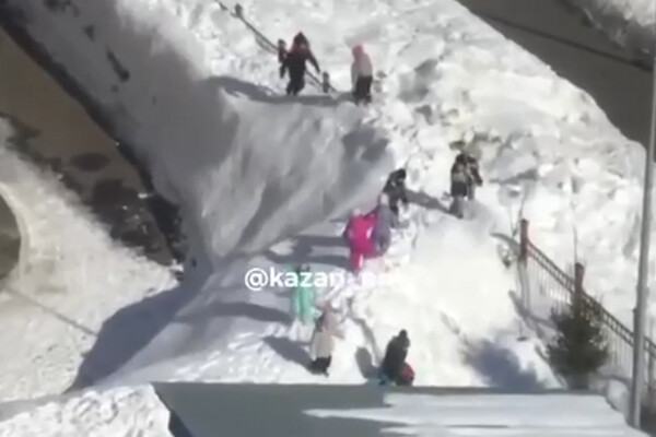 Инцидент произошел в детском саду №68 в Казани и попал на видео, на кадрах ролика, опубликованного в сети, группа детей забирается на огромный сугроб возле забора и спокойно покидает территорию образовательного учреждения.