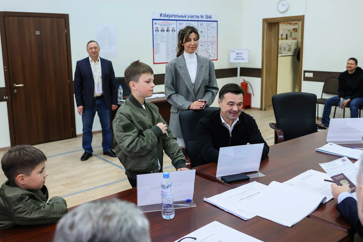 Губернатор Московской области Андрей Воробьев принял участие в голосовании на выборах президента вместе со своей семьей.