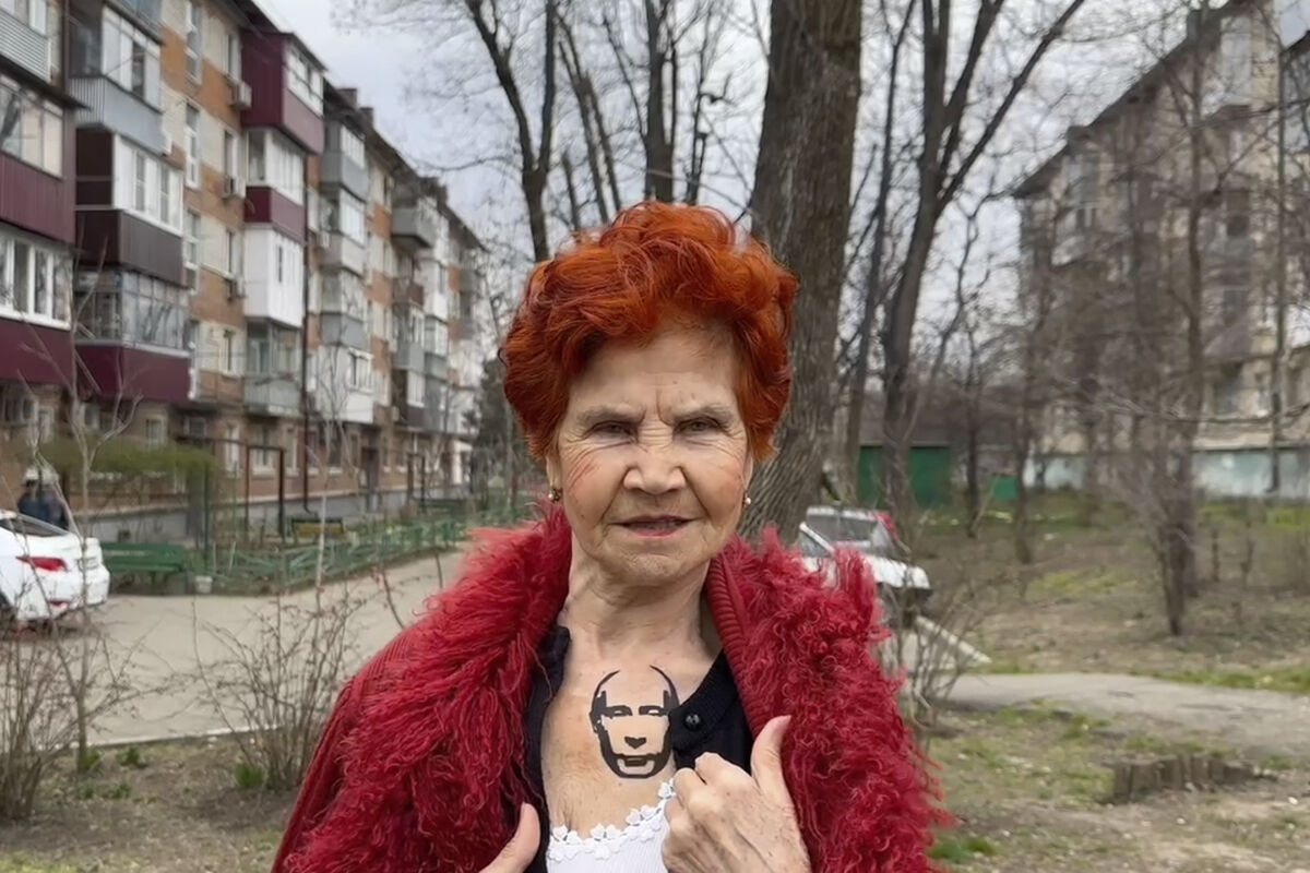«И на меня посмотри! Мы голосуем за Владимира Владимировича Путина. Это наш президент!» — сказала активистка, демонстрируя татуировку в виде лица российского президента.