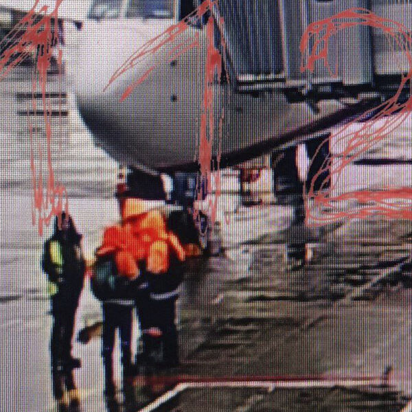 Telegram-канал «112» опубликовал фотографию самолета в аэропорту Шереметьево, в котором пассажирка сообщила, что у нее в рюкзаке бомба.
