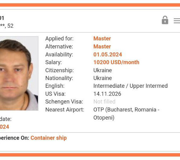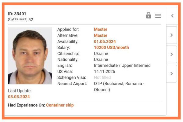 «Последний известный контракт: капитан, контейнеровоз, подписание 19 февраля 2024 года», — указано в документах мужчины.