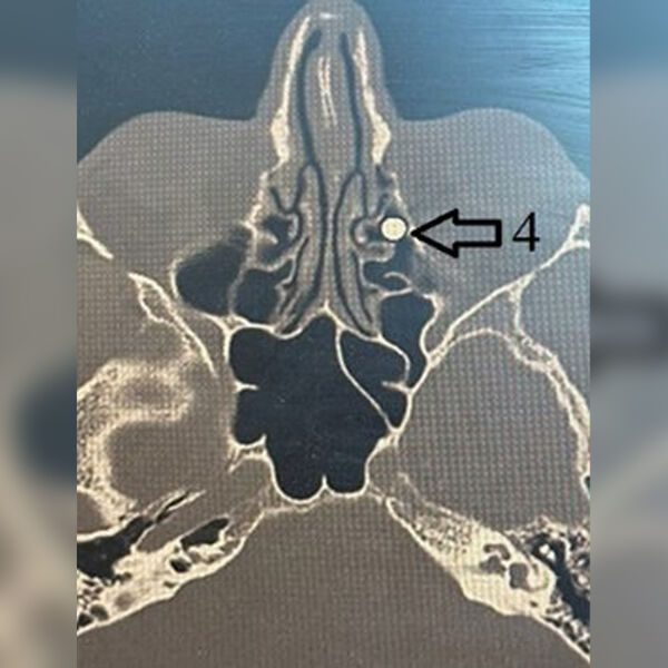 Пациент поступил с ранением из травматического ружья. Пуля диаметром 4,5 мм вошла через внутренний угол глаза, прошла через глазницу и застряла в носу. Сначала мужчине провели операцию по восстановлению тканей глаза, после чего передали пациента врачам лор-отделения клиники.