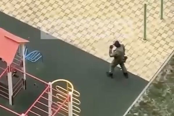 По словам очевидцев, неизвестный в камуфляже и балаклаве вышел на детскую площадку в ЖК «Аквамарин». Мужчина выполнял спортивные упражнения, при этом в его руках находился предмет похожий на нож. Свидетели сняли все на камеру и поделились видео в сети.