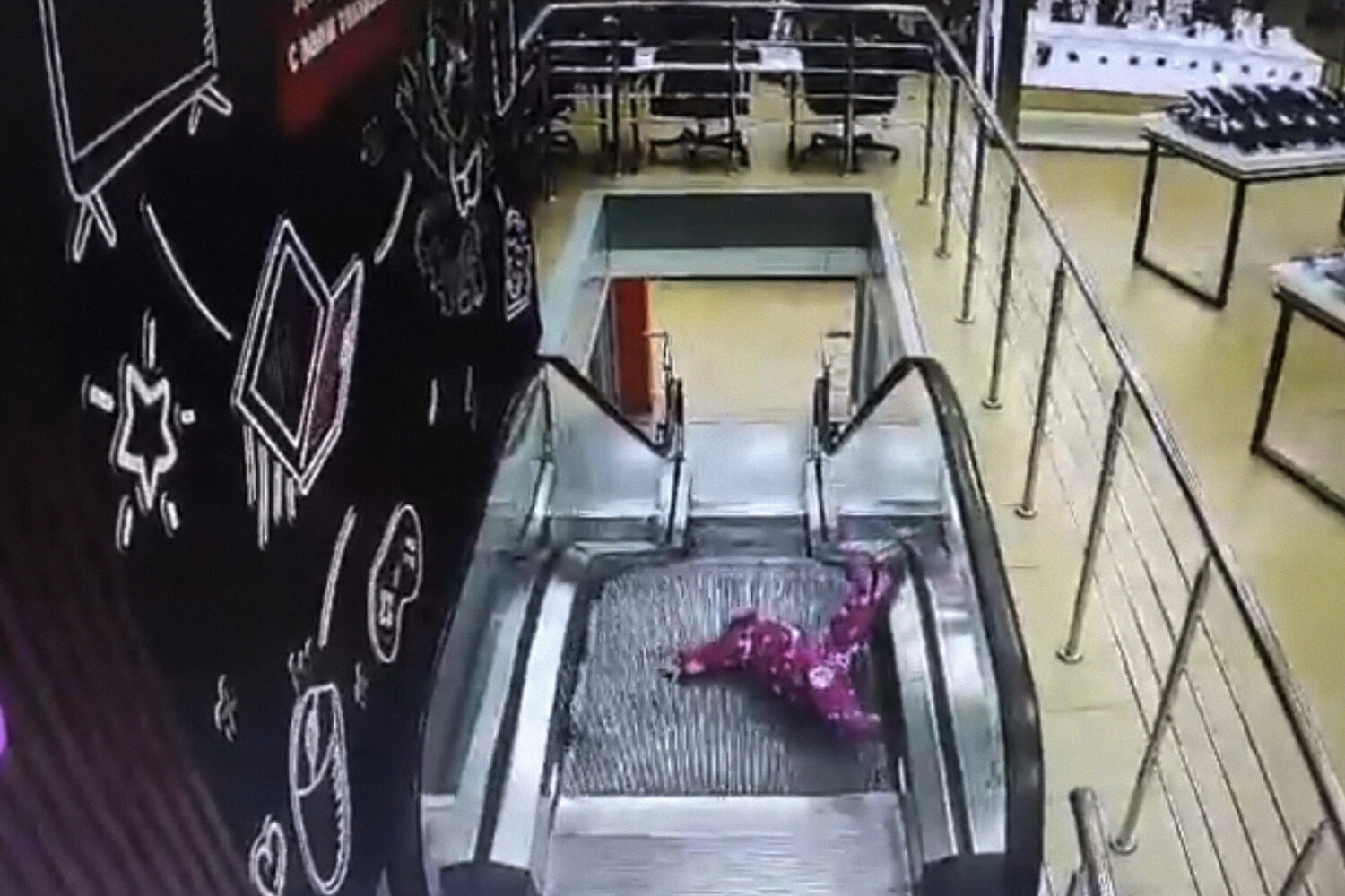 Инцидент произошел в торговом центре Golden Field. На кадрах с места видно, как девочка поскользнулась на первой ступеньке и сразу упала. Эскалатор повез ее вверх, где она застряла и начала плакать.