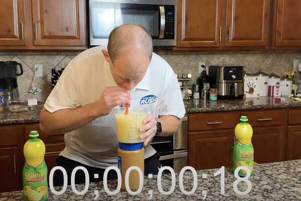 Автором рекорда стал мужчина из США по имени Дэвид Раш. Литр лимонного сока он выпил за 13,64 секунды, побив прошлое достижение на три секунды. По словам американца, он пил сок через трубочку, а через некоторое время у него начал сильно болеть живот.