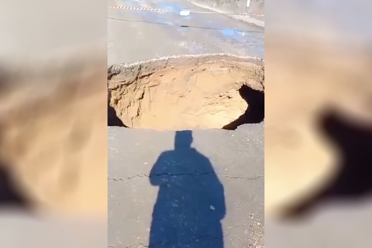 «Огромная яма на дороге образовалась буквально на глазах очевидцев», — говорится в публикации.