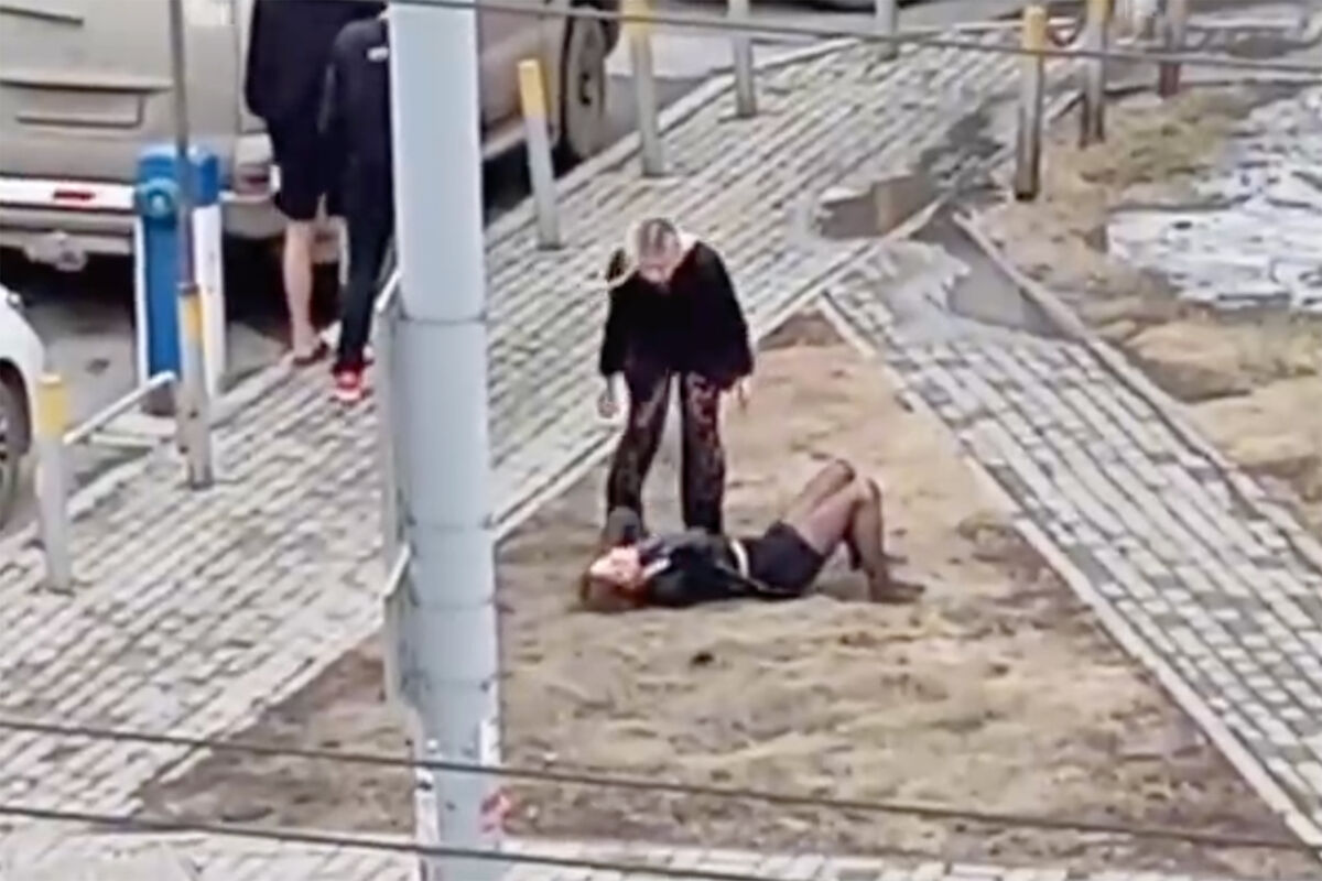 Девушка еще пять раз попыталась встать с земли, однако оппонентка не давала ей этого сделать, хватая ее за волосы и бросая обратно. При этом за всем происходящим наблюдала компания молодых людей, но на помощь никто не пришел.