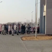 «Человек 30 сегодня ночевали в школе. Спасибо директору, что разрешила. Сейчас будем выстраиваться в очередь», — рассказал автор видео.