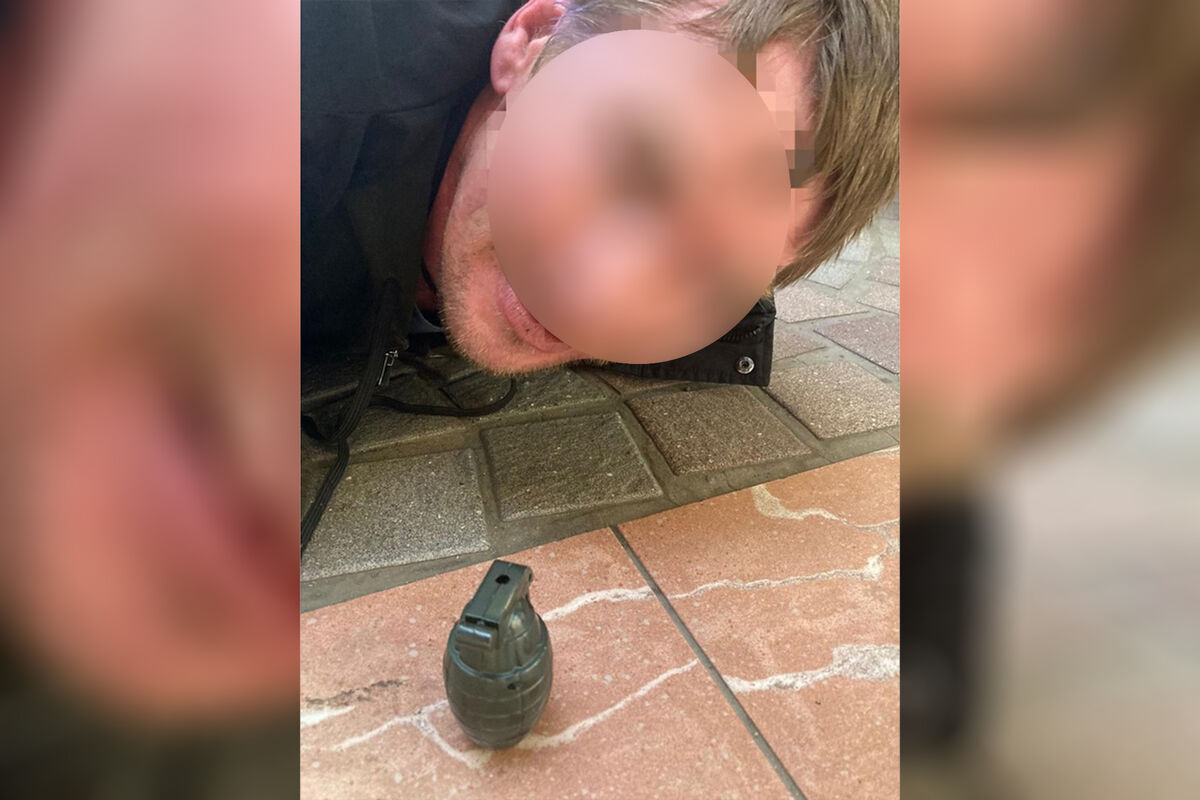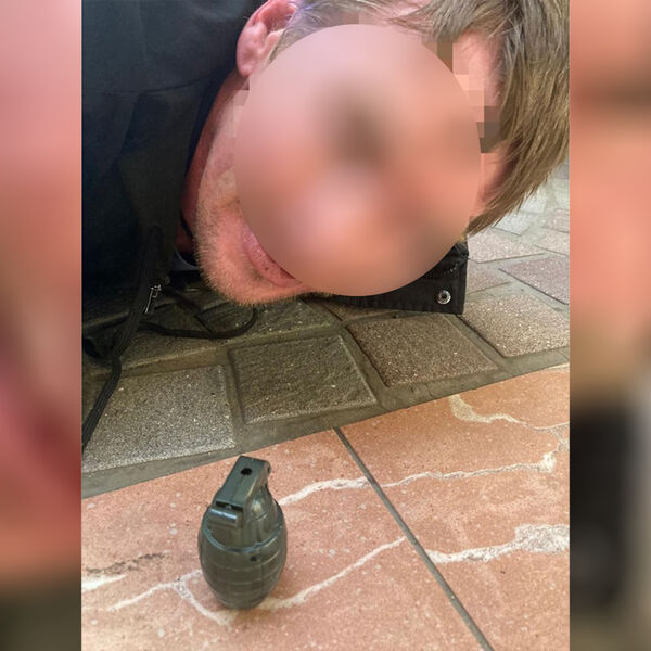 Хулигана удалось задержать, «гранатой» оказалась стилизованная зажигалка, мужчину доставили в отдел полиции, выяснилось, что он был неоднократно судим.