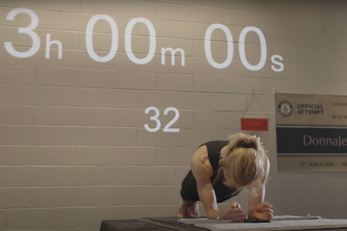 Донна Джин Уайльд, которой исполнилось 58 лет, попала в Книгу рекордов Гиннесса, простояв в планке четыре с половиной часа — это самый лучший результат среди женщин во всем мире. Она обошла предыдущую рекордсменку на 10 минут.