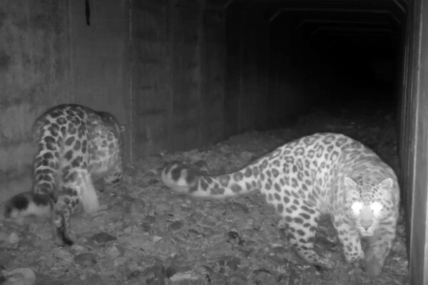 В Приморье фотоловушка засняла встречу двух леопардов в водопропускной конструкции под автотрассой. Кадрами поделился национальный парк «Земля леопарда» на своей странице во «ВКонтакте».