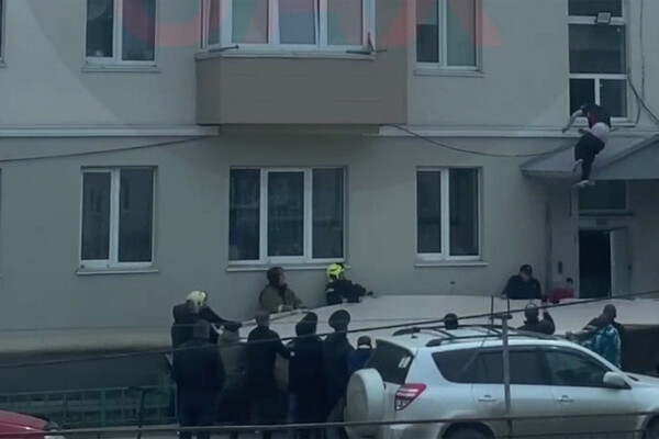 Инцидент произошел 18 апреля в городе Холмск. Мужчина вылез на внешний карниз окна дома 17 по Советской улице, через него перебрался на балкон и долго стоял там. На место ЧП съехались представители экстренных служб. На опубликованном в сети видео пожарные и соседи, обращаясь к мужчине по имени, просят его вернуться в дом. Соседка открывает окно, чтобы мужчина мог зайти обратно через ее квартиру. На кадрах смельчак балансирует на козырьке окна, а затем срывается вниз: ударяясь о козырек подъезда, он падает в тент, который держат пожарные, полицейские и жители дома.