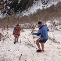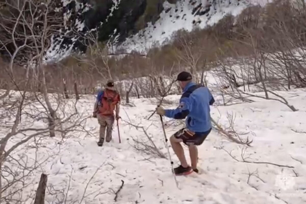 33-летний турист оказался в снежной ловушке в горах Сочи, мужчина в шортах и футболке поднялся на высоту полторы тысячи метров и не смог спуститься вниз по заметенной снегом тропе.