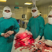 Специалисты назначили экстренную операцию, во время которой удалили фиброму весом более 20 килограмм. Как полагают медики, таких размеров новообразование достигло за пять-семь лет.
