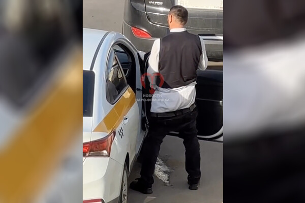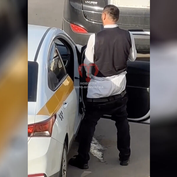 Инцидент произошел в поселке Калининец Наро-Фоминского городского округа. На кадрах видно, как таксист стоит рядом с открытой в машину дверью со спущенными штанами и совершает характерные движения. В одной из рук мужчина держит телефон.