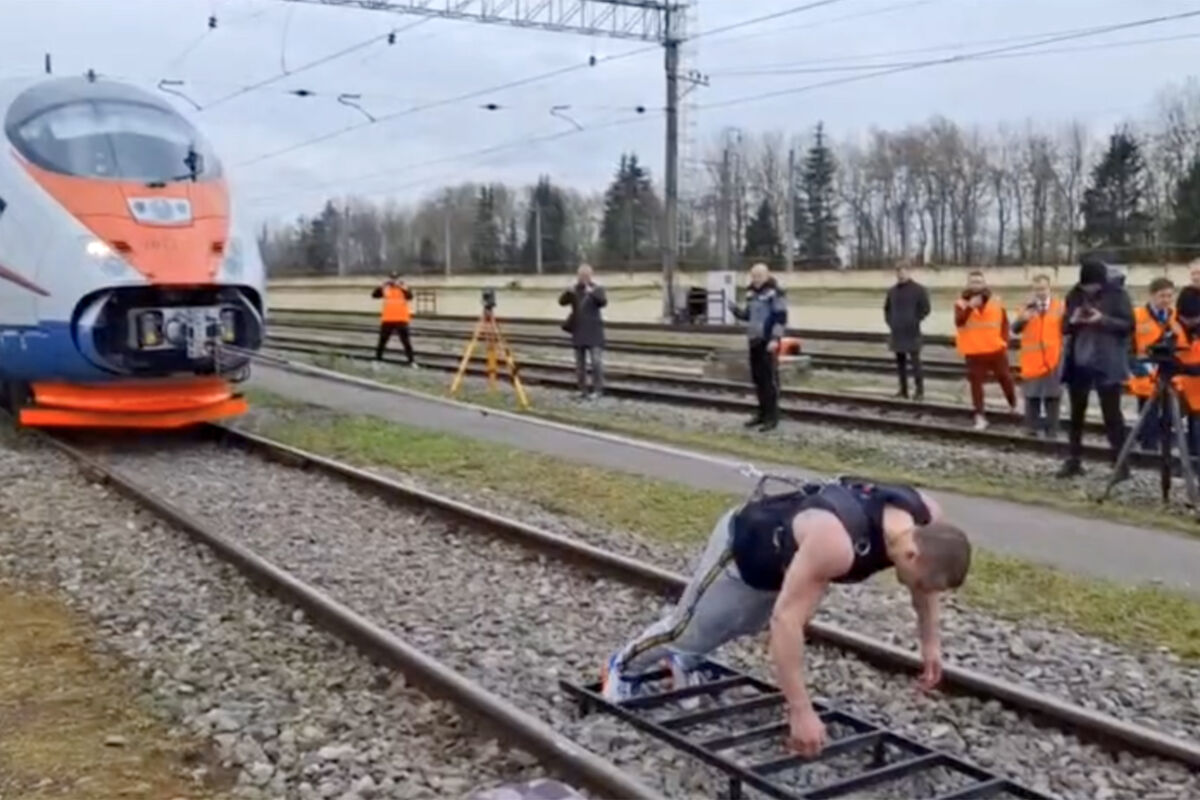 В Петербурге атлет силового экстрима Денис Вовк установил рекорд. Об этом сообщает «РЖД» в официальном Telegram-канале.