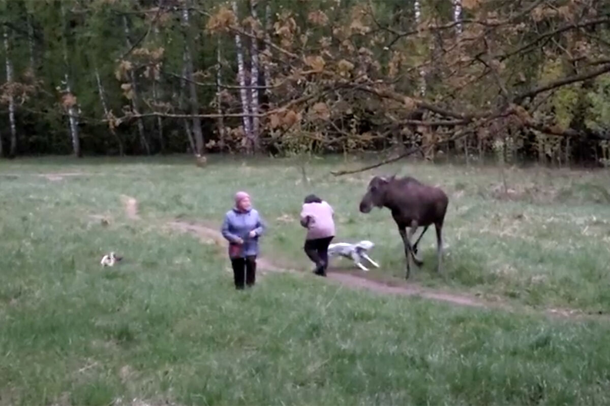 В московском парке «Лосиный остров» лось набросился на двух владелиц собак, которые гуляли с питомцами. Видео произошедшего опубликовали в социальных сетях очевидцы.