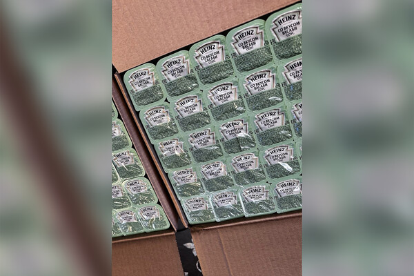 Судя по фотографиям с акции, в числе прочих продуктов жителям раздавали порционный соус Heinz со вкусом васаби. Срок годности соуса американского бренда — 180 суток.