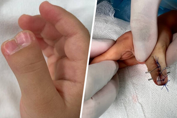 Маленького пациента с врожденным пороком развития — полидактилией, у ребенка в утробе матери удвоился палец на руке. Хирурги прооперировали мальчика и устранили дефект.