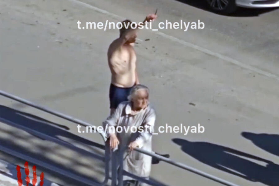 Очевидцы сняли на видео прогулку странной пары по проспекту Победы. На кадрах видно, что мужчина, раздетый до трусов, имеет при себе холодное оружие, а его спутница с трудом сохраняет равновесие и передвигается, держась за ограждение. Неизвестный не пытался атаковать прохожих, но при этом поднимал руку, в которой находился нож.