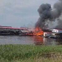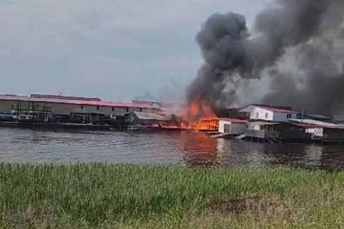 На опубликованном видео с места происшествия можно увидеть, что практически весь лодочный комплекс охвачен огнем.