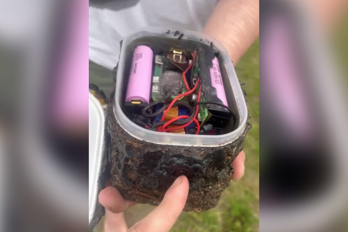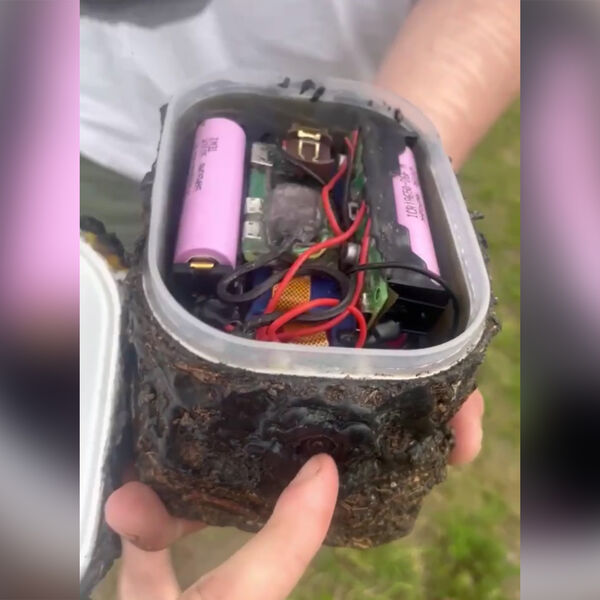 На кадрах с места видно камеру, замаскированную под камень, у которого снимается крышка, а внутри находятся дополнительные аккумуляторы. Сообщается, что устройство обнаружили до наплыва посетителей. Девайс изъяли, а личности ответственных за его появление в женском туалете выясняются.