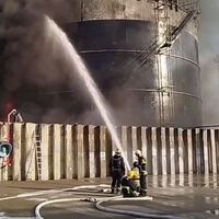 Позднее Голубев заявил, что риски распространения пожара, где горит резервуар с нефтепродуктами, на другие объекты отсутствуют, угроз для населения нет. Губернатор также проинформировал, что в настоящее время лабораторией Роспотребнадзора проводится мониторинг состояния окружающей среды. Превышения предельно допустимых концентраций загрязняющих веществ специалистами зафиксировано не было.