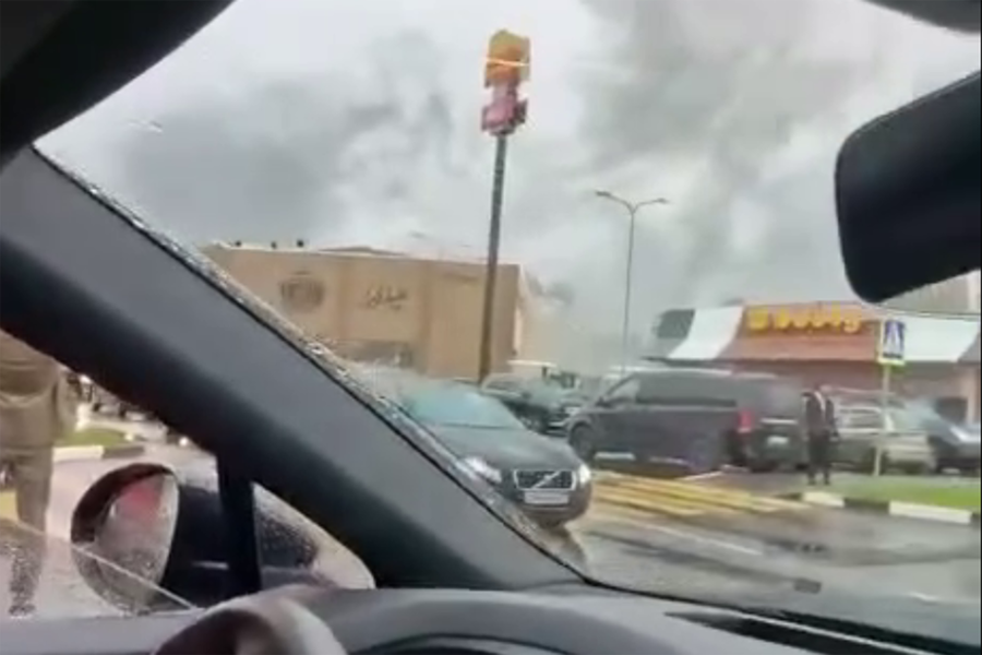На видео, опубликованном каналом, слышно оповещение о пожарной тревоге. Посетителей просят покинуть территорию торгового центра. На месте виден столб черного дыма. По информации канала, эпицентр пожара находится вблизи ТЦ.
