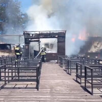 По информации министерства, инцидент произошел на территории городского парка — там вспыхнуло кафе и прилегающее к нему складское помещение. На кадрах с места происшествия видно, что здания практически полностью выгорели.