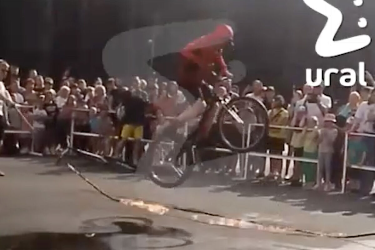В Свердловской области во время выступления экстремалов в зрителей отлетела часть от горящего каната. Об этом сообщает Telegram-канал Ural Mash.