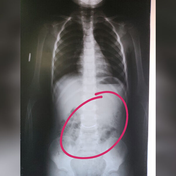 При каких обстоятельствах трехлетний мальчик проглотил инородное тело, медики не уточнили. В ходе обследования в брюшной полости ребенка врачи обнаружили проглоченную им металлическую цепочку длиной несколько сантиметров.
