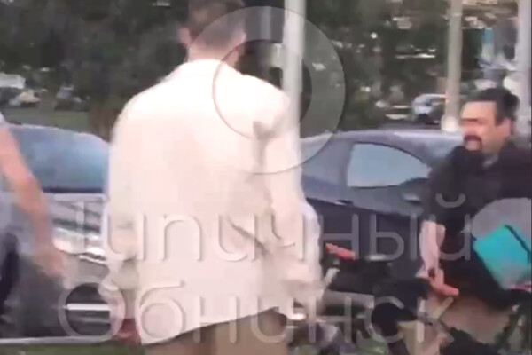 Инцидент произошел в центре города Обнинска. На кадрах заметно, как мужчина резко поднимает ногу и ударяет в лицо человеку. После этого велосипед пострадавшего падает, а он сам отходит на шаг назад, после чего отбегает на какое-то расстояние.