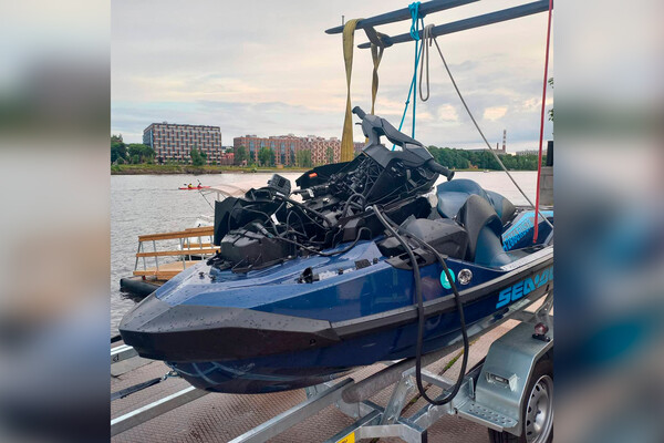 По информации Зорина, в аварии сильно пострадал гидроцикл: у него повреждены корпус, верхняя и рулевая части.