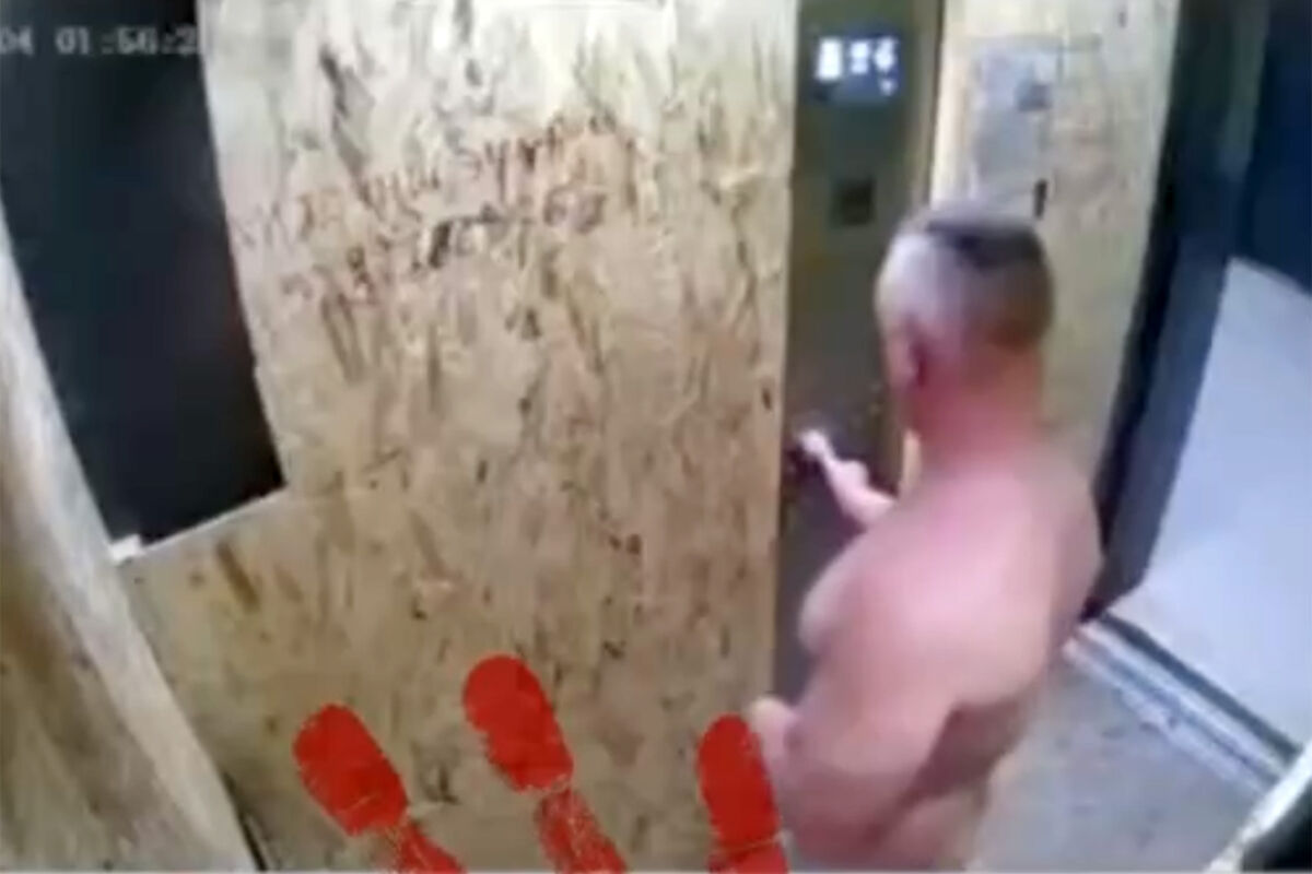На кадрах, снятых на камеру видеонаблюдения, видно, как вместе с неодетым неизвестным в лифт собирался зайти другой мужчина. Однако тот передумал, увидев странного попутчика, который показал ему зазывающий жест.
