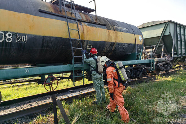 По информации министерства, инцидент произошел на железной дороге на улице Голублева. Из-за высокой температуры воздуха из цистерны через заливную горловину начала переливаться находящаяся в ней серная кислота. Предварительно, площадь разлива составила один квадратный метр.