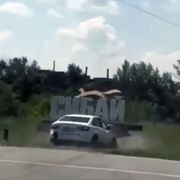 На кадрах, сделанных из другого авто, видно, как LADA Vesta движется по Индустриальному шоссе, но внезапно ее начинает заносить. Именно в этот момент водителю стало плохо, и он не сумел остановить машину.