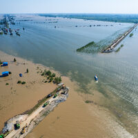 Телеканал отметил, что ширина прорыва составляла около 10 метров, однако под напором воды он продолжает расширяться. Специалисты возвели временную насыпь в двух километрах от дамбы.