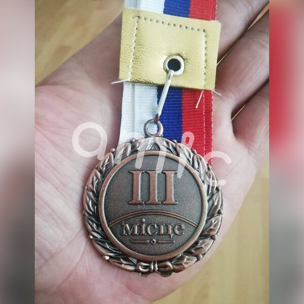 На опубликованной фотографии видно медаль за третье место. На награде на украинском написано: «III мiсце». Также на снимке можно разглядеть ленту, выполненную в цветах флага России.