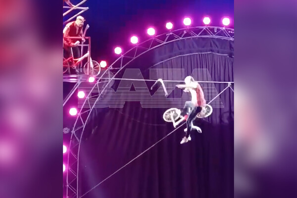 Артист цирка в Ростове-на-Дону мог упасть с высоты во время движения на велосипеде без руля по канату из-за того, что у него соскользнула нога с педали. Об этом 360.ru рассказала зрительница Екатерина.